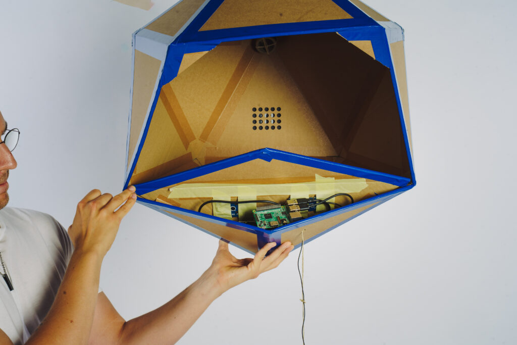 Die Umsetzung kombiniert ein physisches Interface (Pappkarton, Mikrofon, Lautsprecher, Arduino/Grove) mit Cloud-basierten KI-Diensten, um einen immersiven, auditiven Kreislauf der Selbstbestätigung zu schaffen. Das Ergebnis ist eine pointierte Auseinandersetzung damit, wie sich eine Welt anfühlt, in der die eigene Meinung stets gefeiert wird.